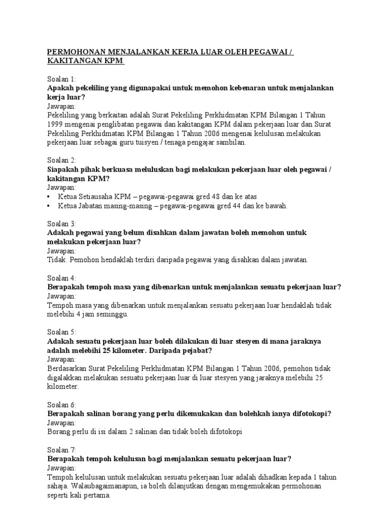 Qa Permohonan Menjalankan Kerja Luar Oleh Pegawai Pdf